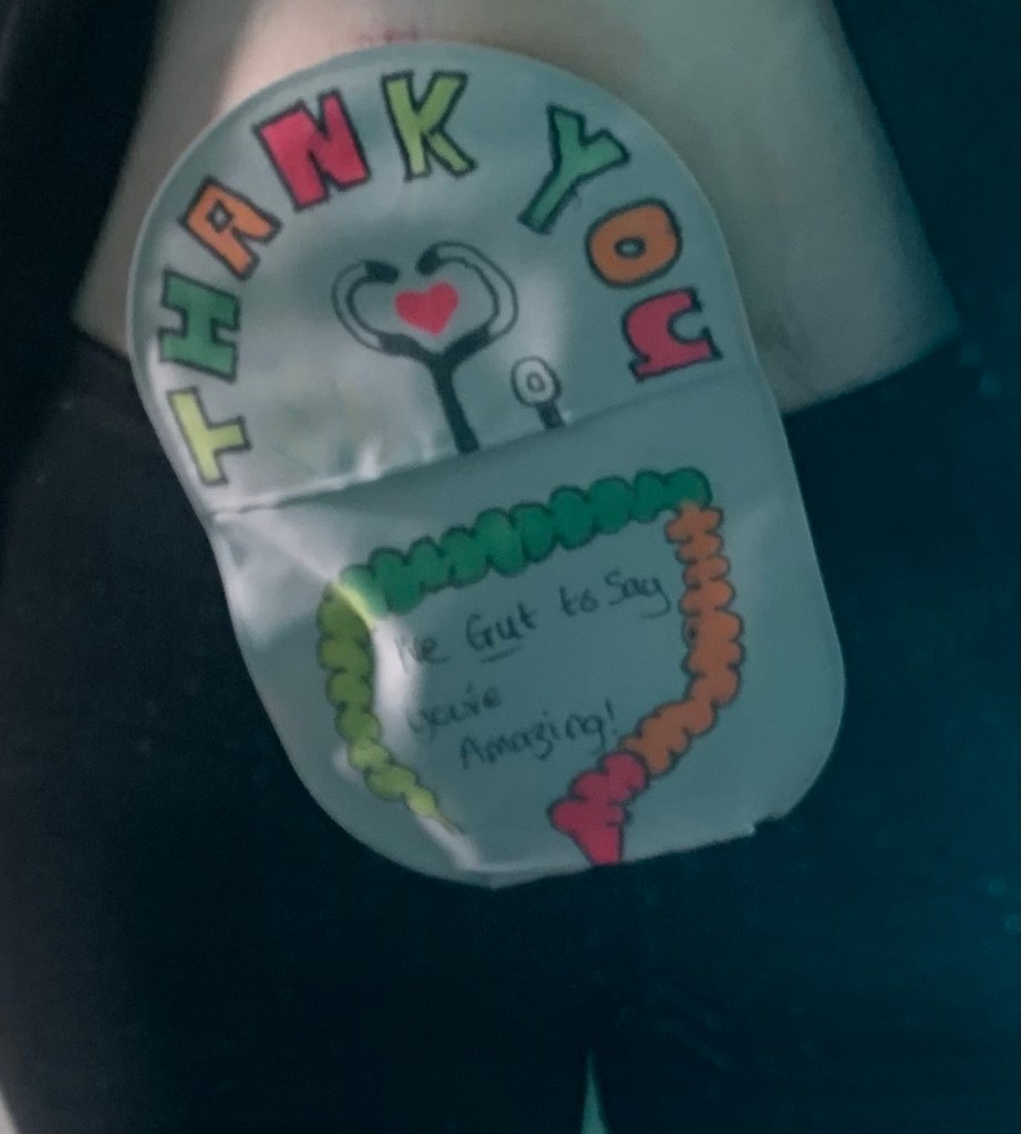 This afternoon was my follow up appointment with the surgeon, Mr Ball, a very personable and attractive man, incredibly good at his job, who again put me and my quality of life at the centre of my care. I wasn’t sure what to expect from this appointment as the nurses have been checking my stoma, and my bottom doesn’t seem to have caused me any problems. So I went in thinking it might be a bit more like a Q&A about how I was doing, and then summarised with a discharge. I decided that I would do a special bag for the occasion, just in case he did want to see, and I’m so glad that I did.